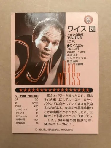 1999年,福冈举办的亚洲杯男子篮球预选赛中,日本队加入了一名名叫“ワイス 団(英文名Daniel A Weiss)”的中锋球员。这也是日本历史上第一次启用“归化球员”。