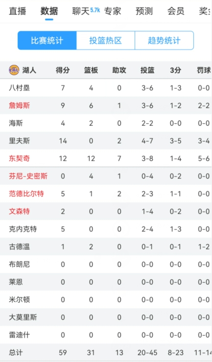 独行侠上半场52中18&命中率仅34.6% 湖人命中率44.4%