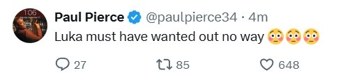 对此,NBA名宿皮尔斯更推:东契奇肯定不想走!