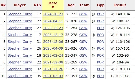 库里目前对开拓者10连胜 他上次输给开拓者还是1469天前
