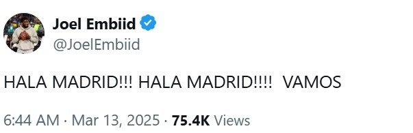 恩比德更推道:“加油皇马!加油皇马!加油!”