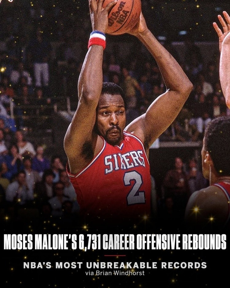 如果算上在ABA的数据,摩西-马龙的进攻篮板总数将达到7382个。仅计算NBA的数据,他也比排名第二的阿蒂斯-吉尔摩多出2500个,比罗伯特-帕里什多出2100个。马龙还保持着单场进攻篮板的最高纪录(21个),第二名(19个)也是马龙的。目前现役球员中生涯进攻篮板最多的是安德烈-德拉蒙德,但他仍比马龙少3600个。