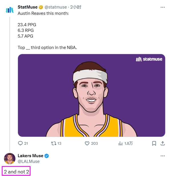 湖人媒体Lakers Muse评论道:“前二,但不是第二。”