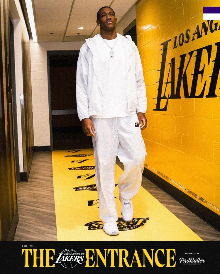 湖人众将入场穿搭:文森特墨镜配项链 布朗尼蜘蛛连帽衫