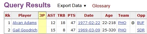 据统计,太阳队史仅有3名球员打出过至少47分6板11助的数据,前两人分别是阿尔万-亚当斯和盖尔-古德里奇。