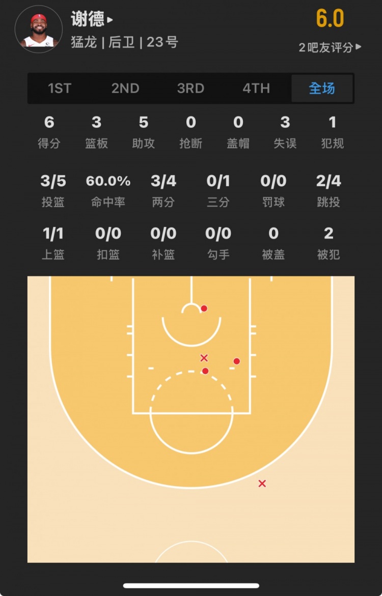 猛龙45号秀 贾马尔-谢德 登场17.1分钟