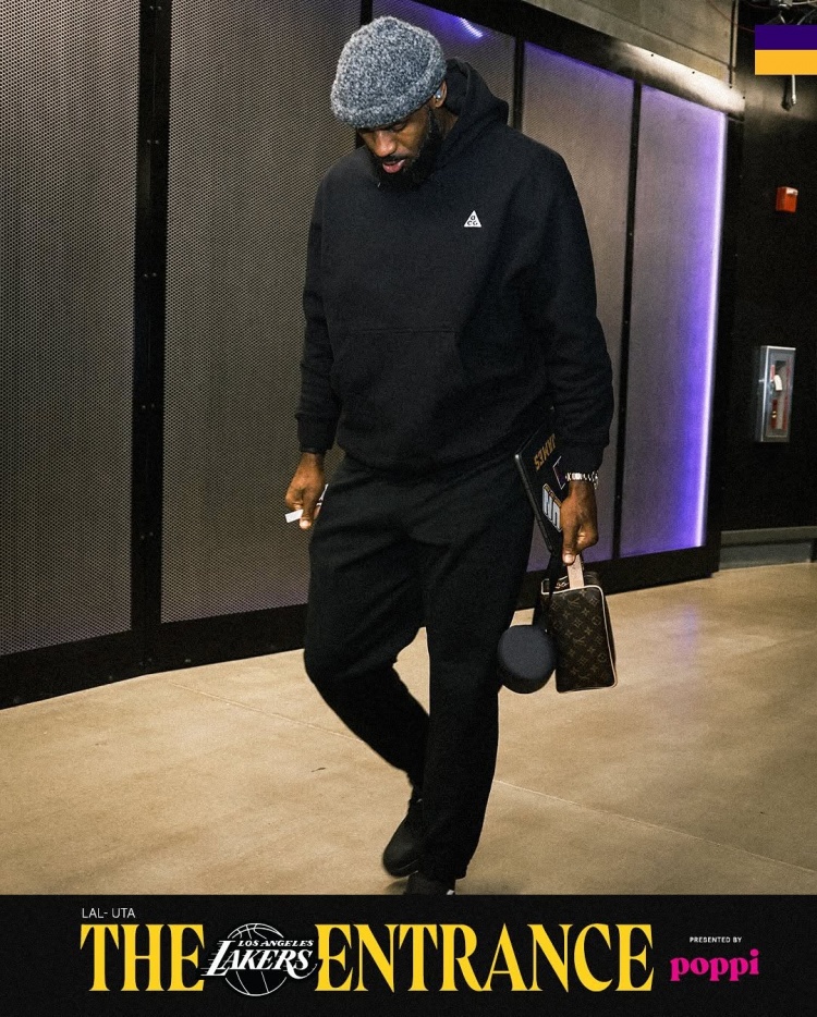 湖人众将入场穿搭:里夫斯、詹姆斯、东契奇统一黑色卫衣⚫️