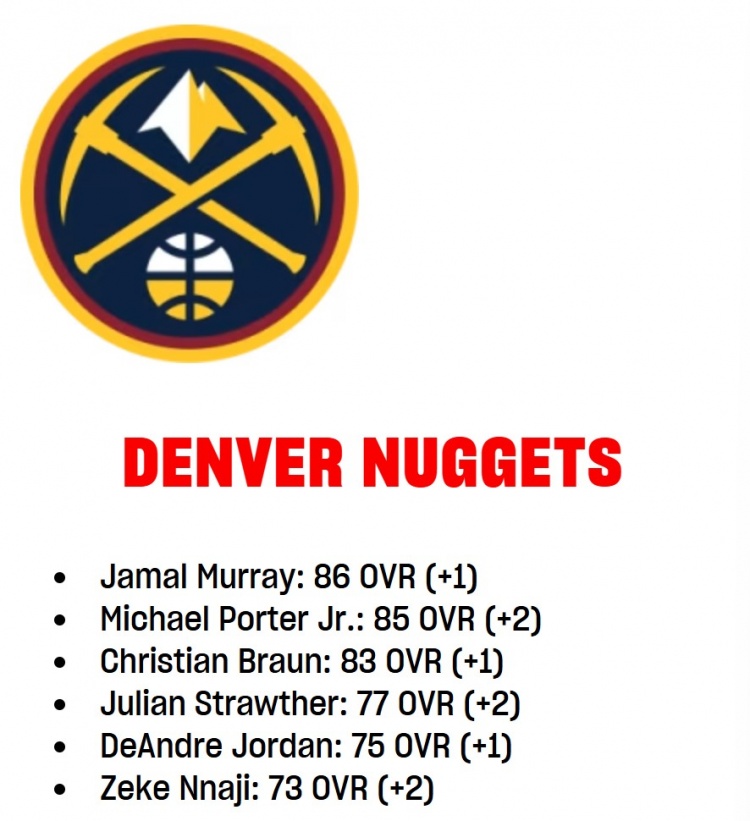 2K能力值变化之掘金:穆雷+1至86 小波特+2至85 全队6人涨分