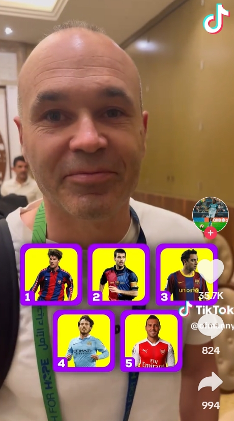 伊涅斯塔挑选历史最佳五人阵:哈维、瓜帅在列,梅西未入选