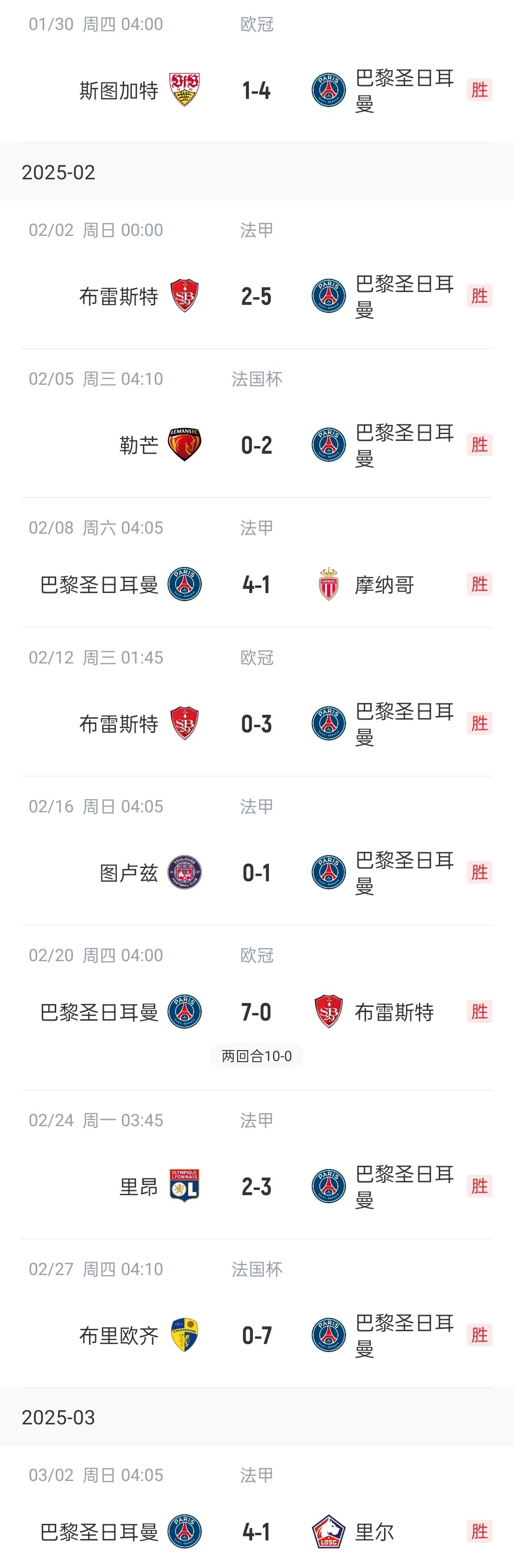 法甲第24轮,巴黎圣日耳曼4-1战胜里尔,在各项赛事豪取10连胜,近22场比赛保持不败。