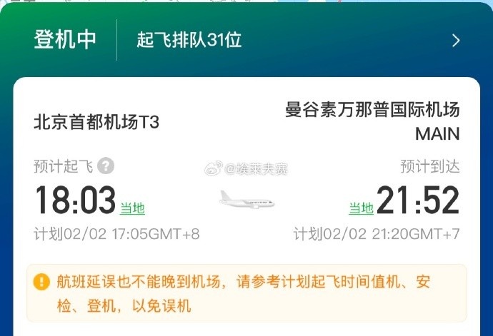昨天晚点后返航!博主:泰囧,今天国安飞泰国的班机继续晚点