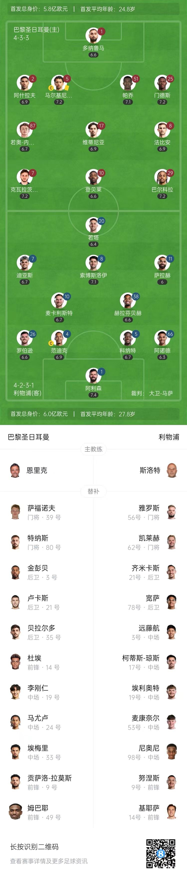 【双方比赛阵容】
