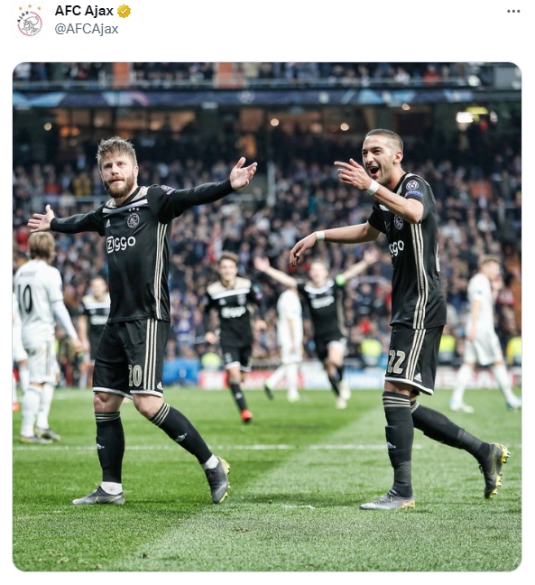 6年前的今天,欧冠1/8决赛次回合,皇马主场1-4惨败阿贾克斯,阿贾克斯青年军淘汰皇马杀入八强。阿贾克斯官推晒出多图,重温这场经典战役。