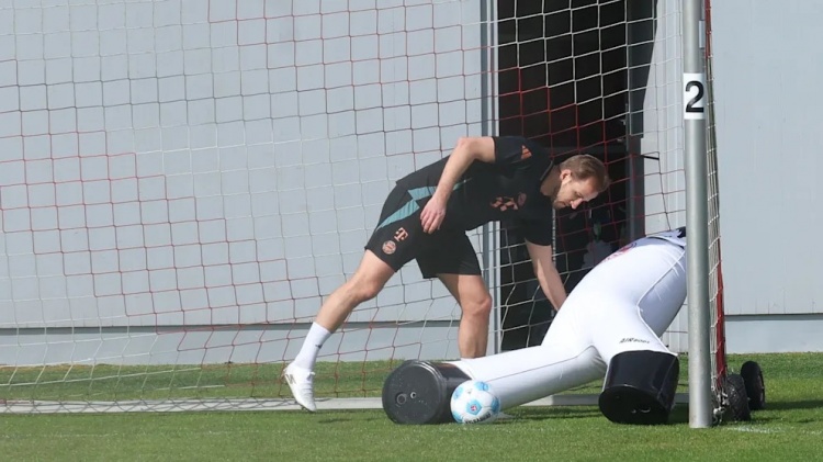该媒体指出,拜仁大部分球员都选择留在室内进行恢复性训练,但凯恩和奥利塞选择来到训练场加练射门。尽管没有门将球员协助,但他们借用了两个充气玩偶在球门位置镇守。