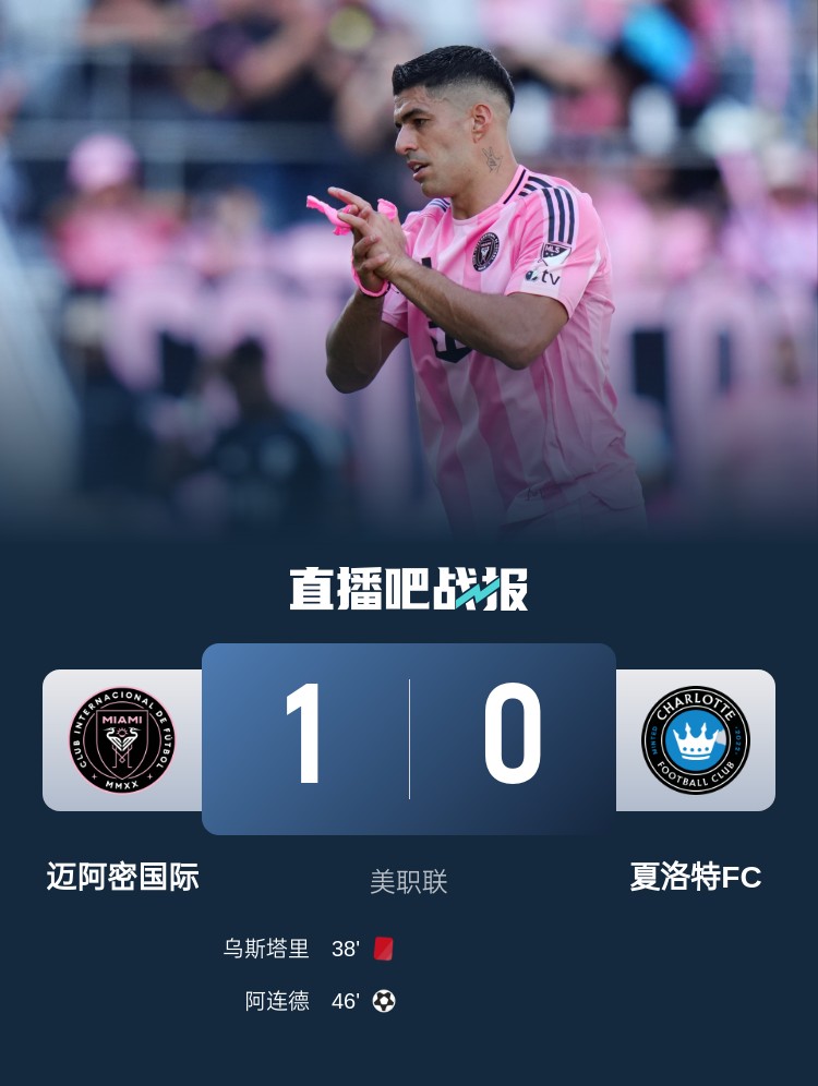 美职联本轮迈阿密国际1-0击败夏洛特FC,梅西替补未出场,阿连德破门,苏亚雷斯助攻。