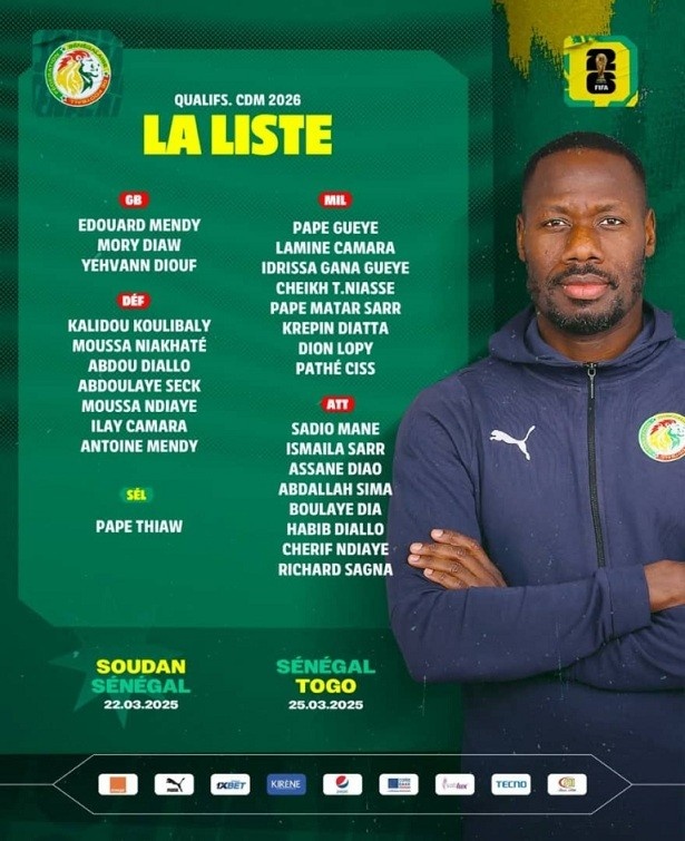 当地时间本周四,塞内加尔国家队公布了新一期大名单,备战接下来对苏丹(3月22日)和多哥(3月25日)的两场世界杯非洲区预选赛。其中阿萨内-迪奥首次入选塞内加尔国家队。