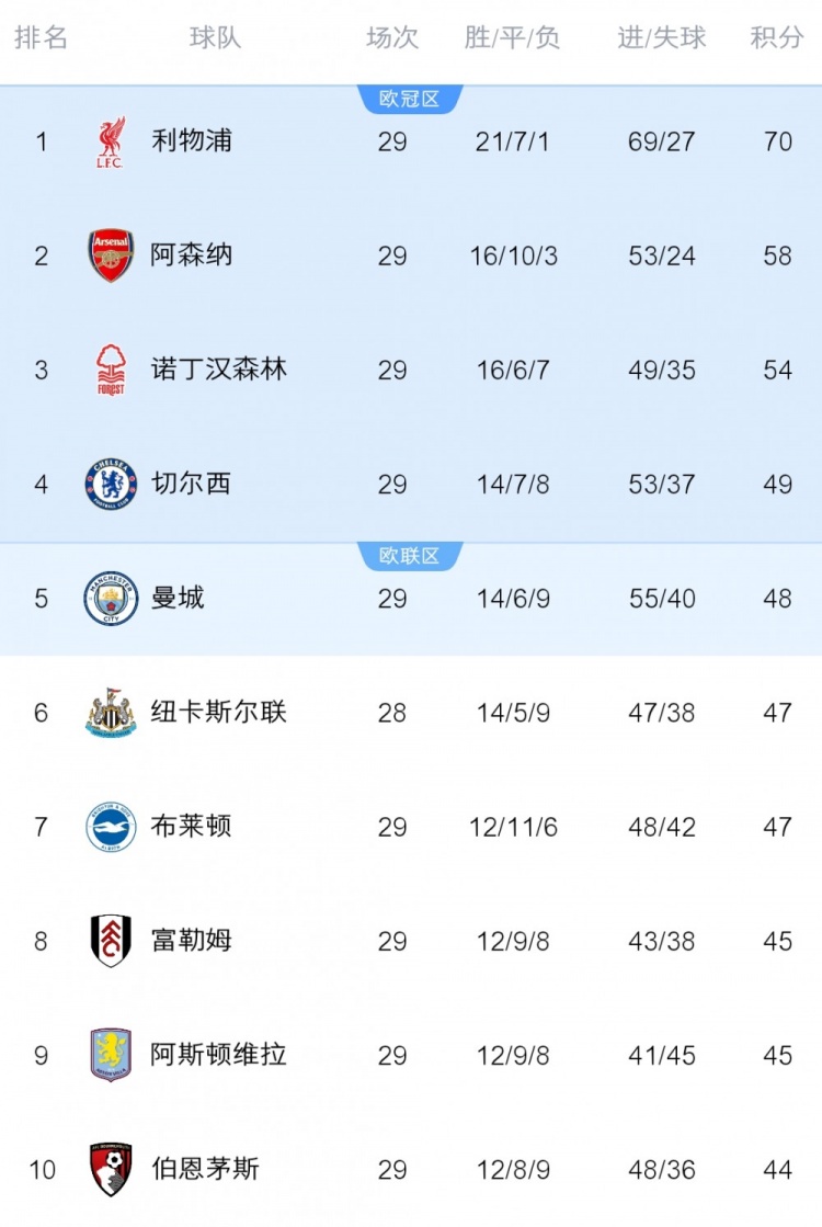 标签: 足球 英超 曼城 诺丁汉森林 伯恩茅斯 布莱顿 纽卡斯尔联 切尔西 阿斯顿维拉 富勒姆