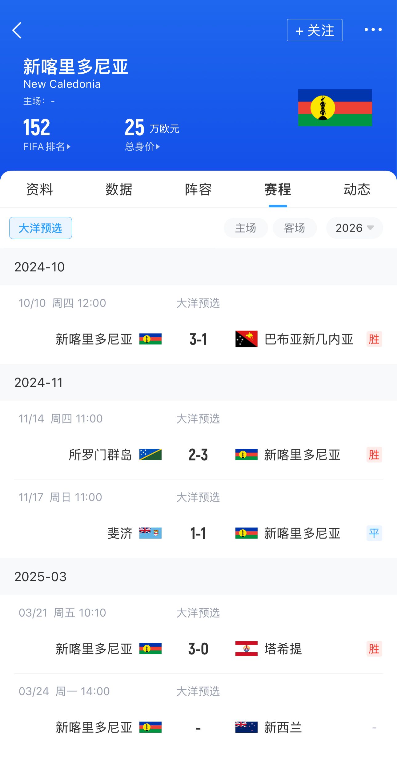 新喀里多尼亚FIFA排名第152,阵容身价25万欧,不及新西兰的百分之一。