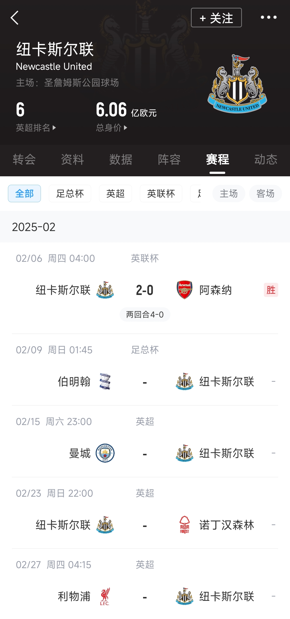 02月06日讯 联赛杯次回合,纽卡再度2-0击败阿森纳,完成对阿森纳的两回合双杀。