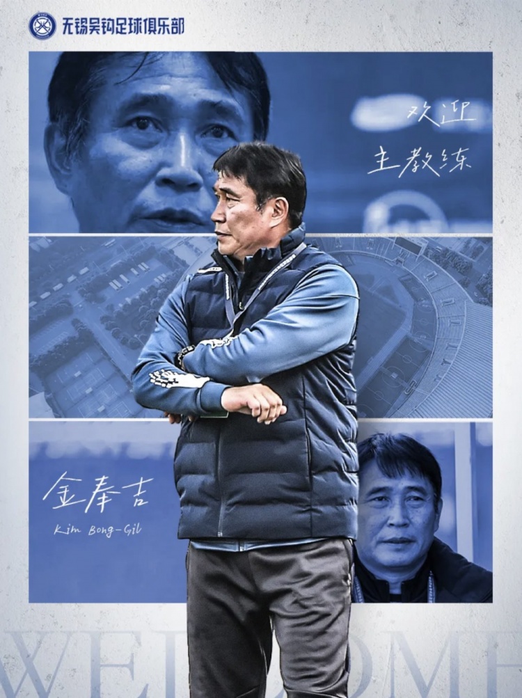 经与本人友好协商一致,即日起,韩国籍教练金奉吉先生出任无锡吴钩足球俱乐部一线队主教练。