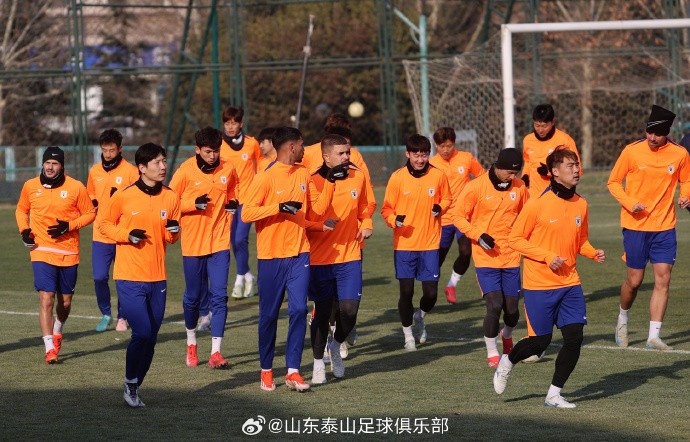 山东泰山队在基地内进行赛前官方训练,积极备战亚冠精英联赛