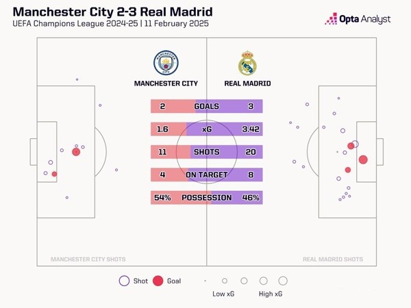 自己射门11次,对手射门20次,瓜迪奥拉堆积后卫的策略完全失败了。