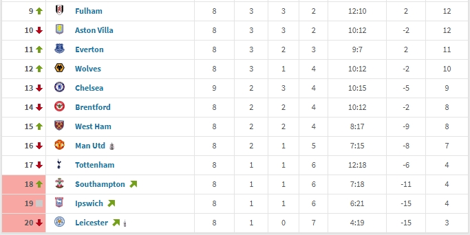 值得一提的是,在降级区边缘,有着两位眼熟的传统BIG6成员:曼联与热刺。他们在此前8轮拿7分和4分,仅仅高于降级区的升班马三兄弟。而本轮,他们将正面交手。