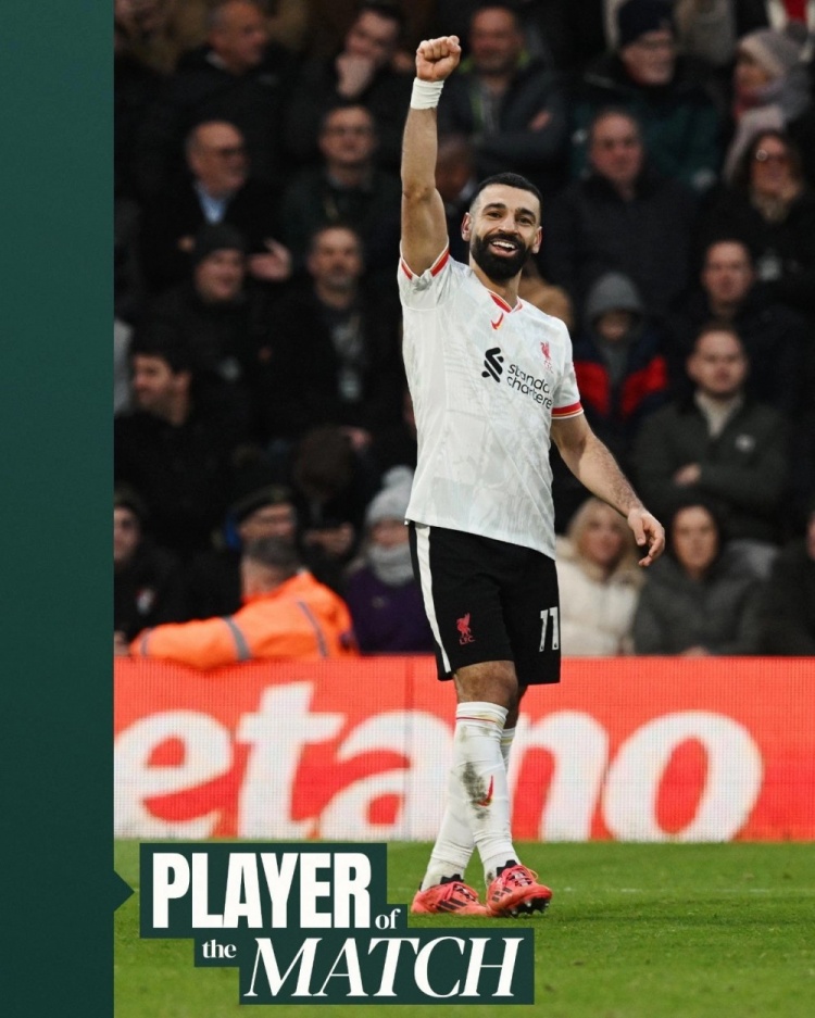 梅开二度!英超官方:萨拉赫当选本场球迷票选全场最佳 2月2日讯 利物浦在本轮英超2-0力克伯恩茅斯,萨拉赫在赛后评球迷票选为本场比赛官方最佳球员。萨拉赫在本场比赛打进两球,超越传奇兰帕德以178球独享英超历史射手榜第6位。 2025/02/02