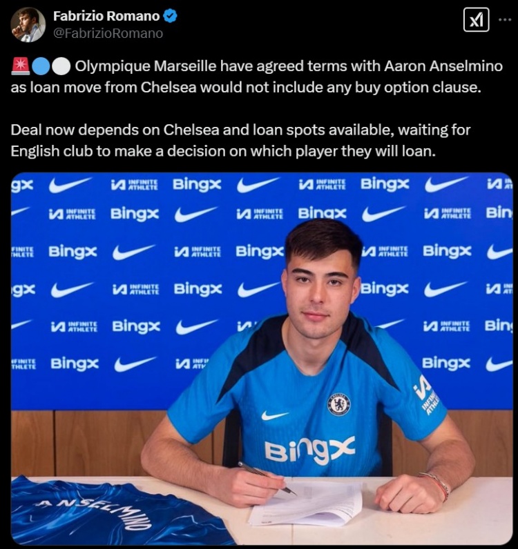 罗马诺:蓝军后卫安塞尔米诺租借加盟马赛达协议,不含买断条款 2月2日讯 据知名转会专家罗马诺报道,马赛已经与安塞尔米诺就租借达成一致,该交易不包含买断选项。报道称目前该笔交易取决于切尔西,以及球队是否还有租借名额。现在需要等待蓝军决定租借名额留给哪位球员。安塞 2025/02/02