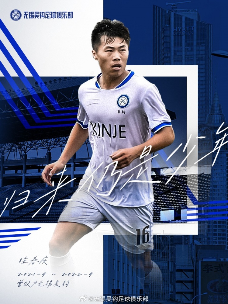 经双方协商一致,球员徐春庆加盟无锡吴钩足球俱乐部 我们在此郑重宣布,经双方协商一致,球员徐春庆加盟无锡吴钩足球俱乐部。2025赛季,他将为无锡而战!徐春庆,1997年2月6日出生,江苏盐城人,身高1.83米,体重78公斤,司职前锋、边前卫。徐春庆出自 2025/01/31